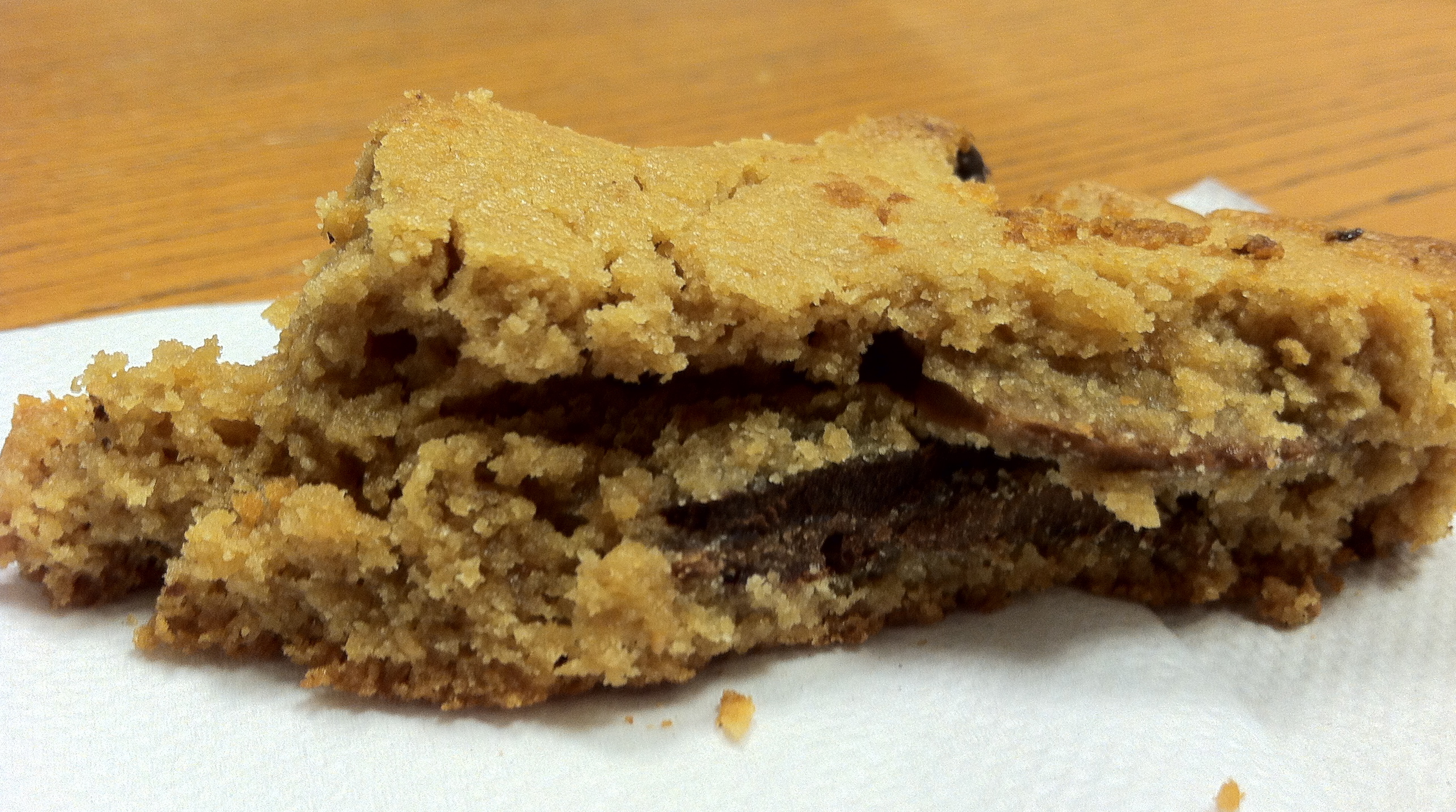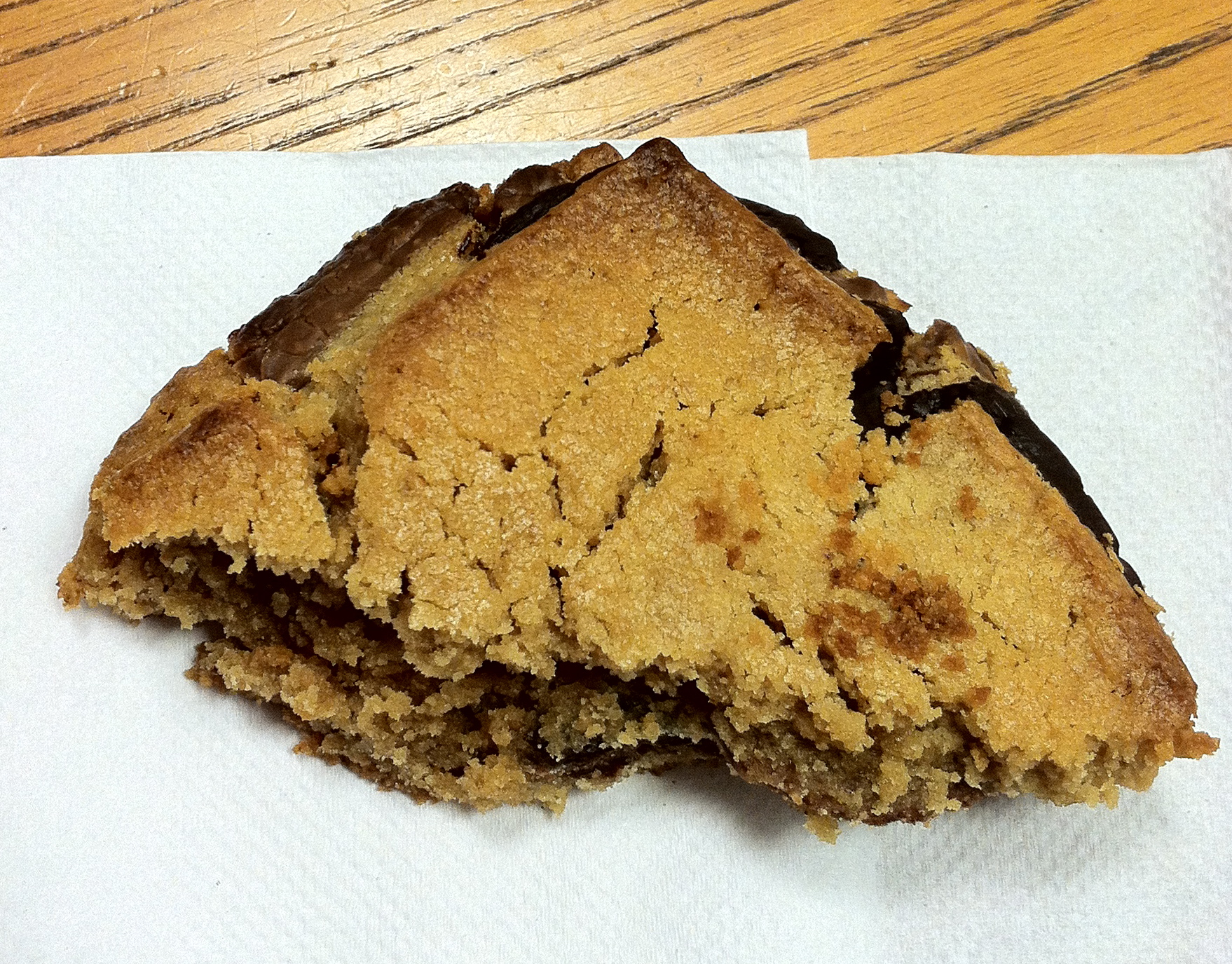 For an extra $0.50 ($3.50 versus $3.00 for the other two types) you can enjoy this behemoth of a cookie, which says a lot given that the original two were no slackers. Jacques Torres has seemingly taken the base of their classic chocolate chip cookie dough, mixed in some peanut butter, and then layered it with not only the bittersweet chocolate disks that grace the classic, but also some milk chocolate disks as well. The result is a striated mountain of a cookie. Don’t worry – there is a fair dose of salt to offset the intense sweetness and to round out the nutty taste, but it will still be a challenge to scarf more than half in one go.