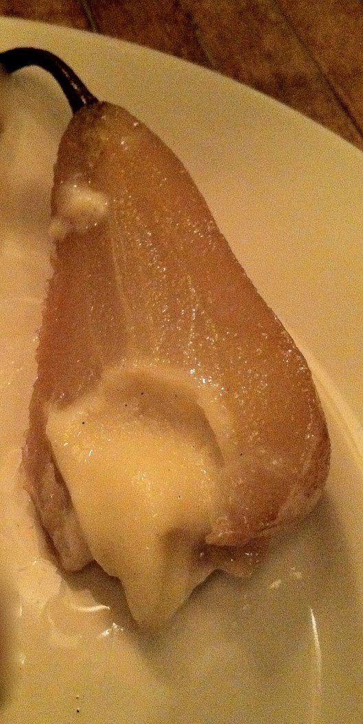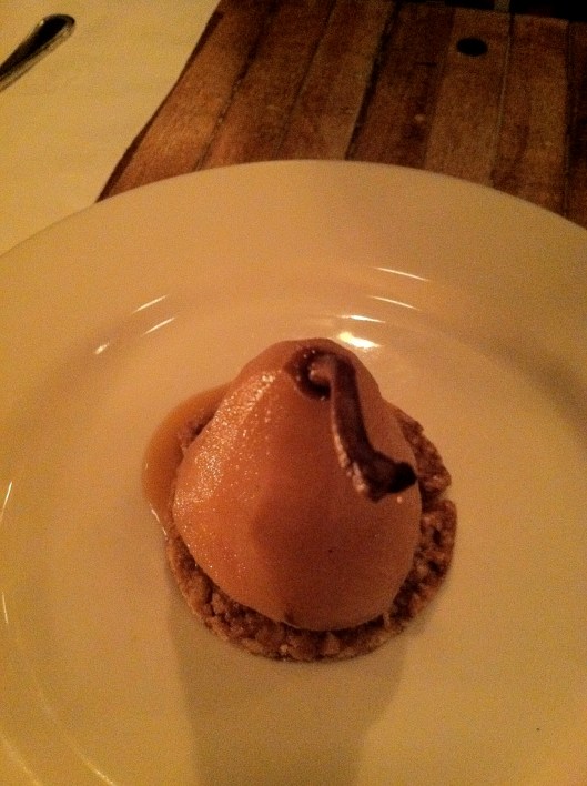 For the pomp of its name, the actual dessert was much more simplistic and elegant. A whole, poached pear comes perched on a perfect round of brittle. Inside, the seeds have been neatly scooped out and replaced by a quenelle of the ice cream.